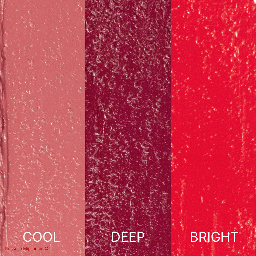 La collezione completa dei 3 rossetti Inverno: Deep, Cool e Bright, da mixare tra di loro per una massima personalizzazione.